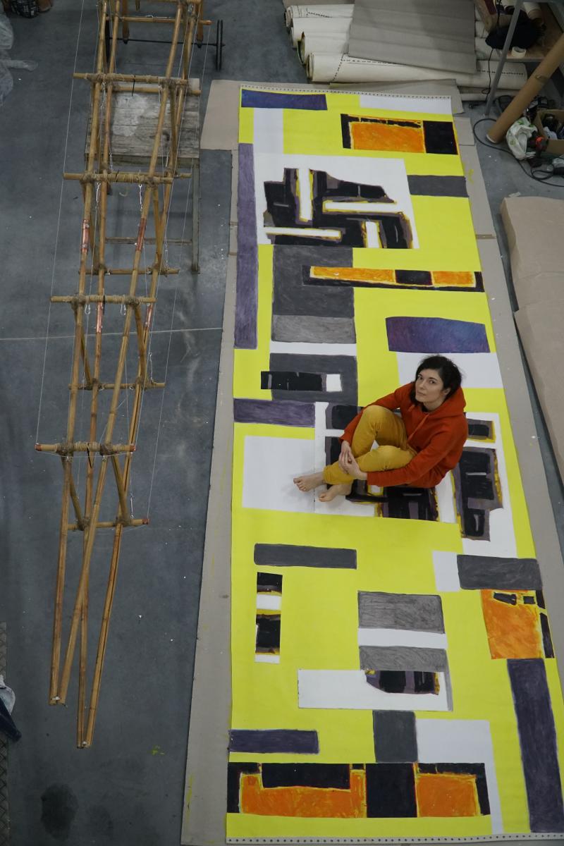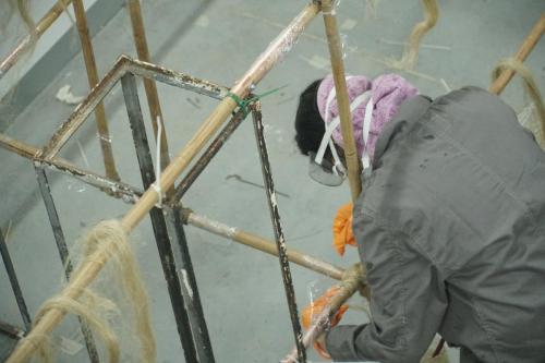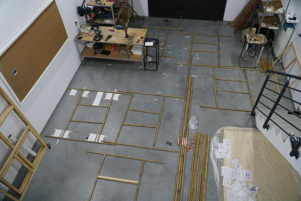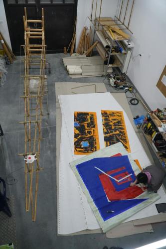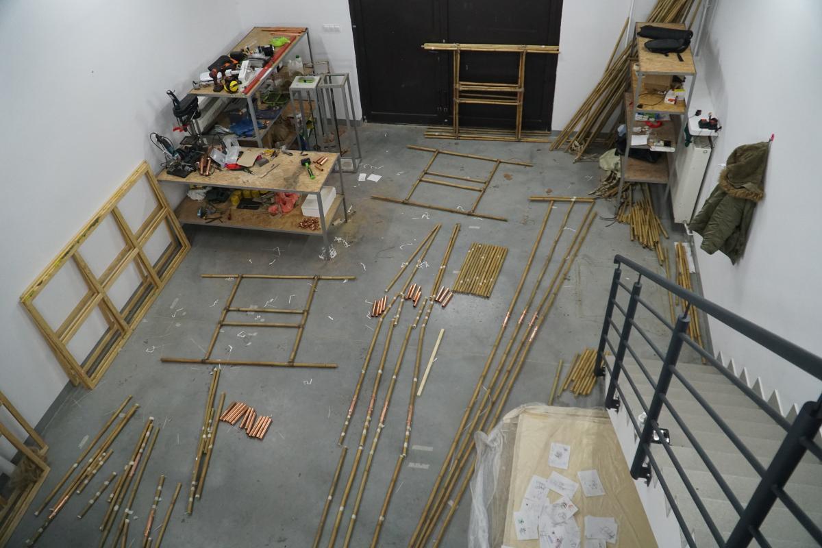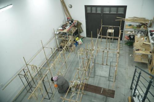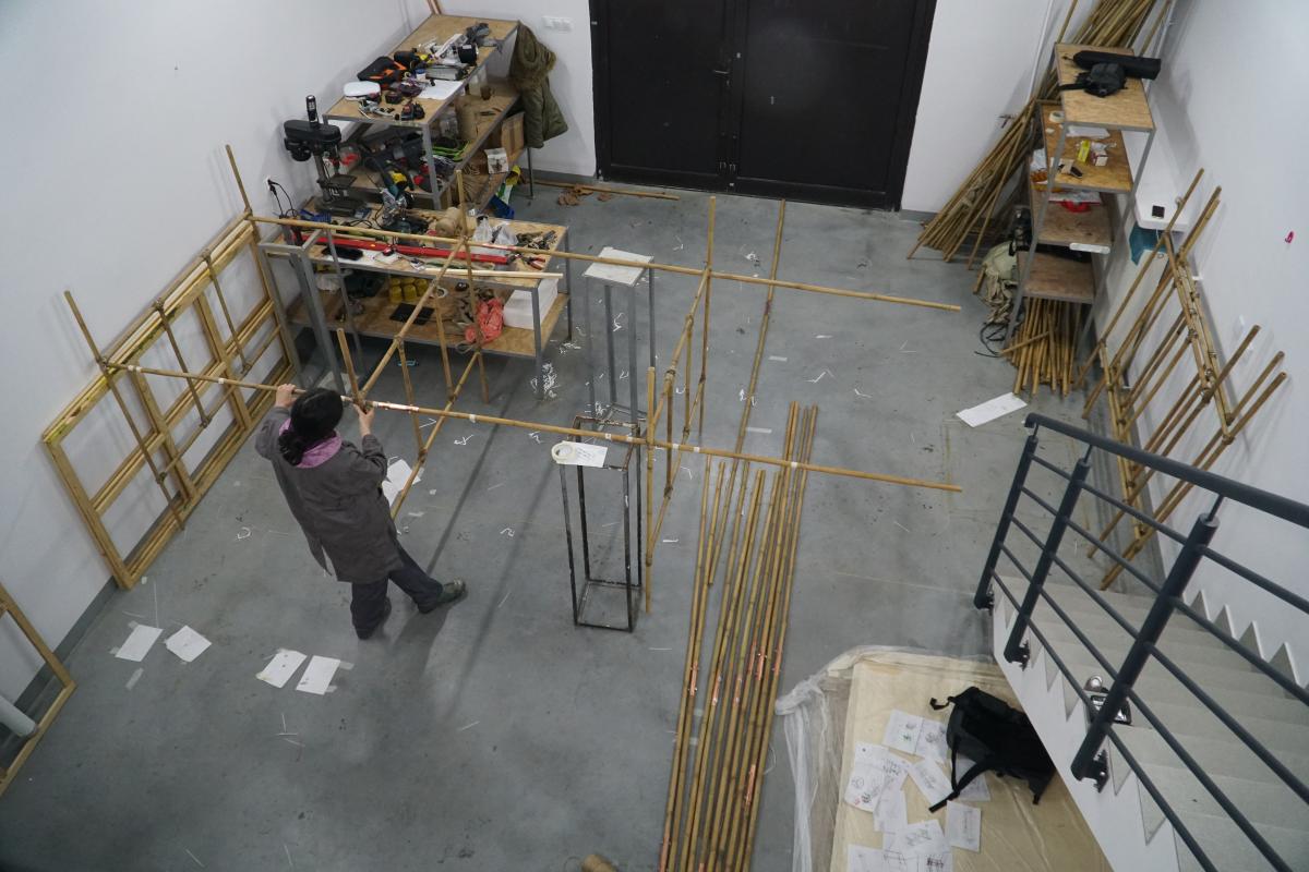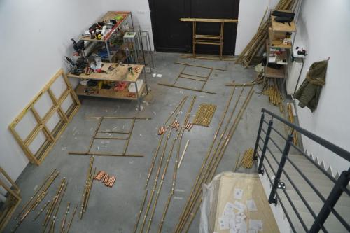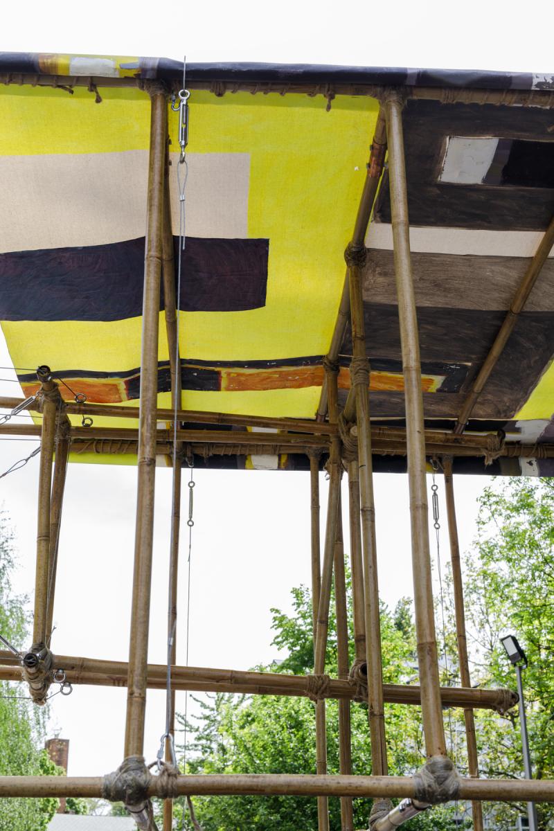 A-21. The Machine for Vanishing” is an aeroplane made of bamboo and paintings. The machine explores the ambivalent human relationship with physical reality and nature. At the same time the object aims at capturing the primal elements and immersing ourselves in them.